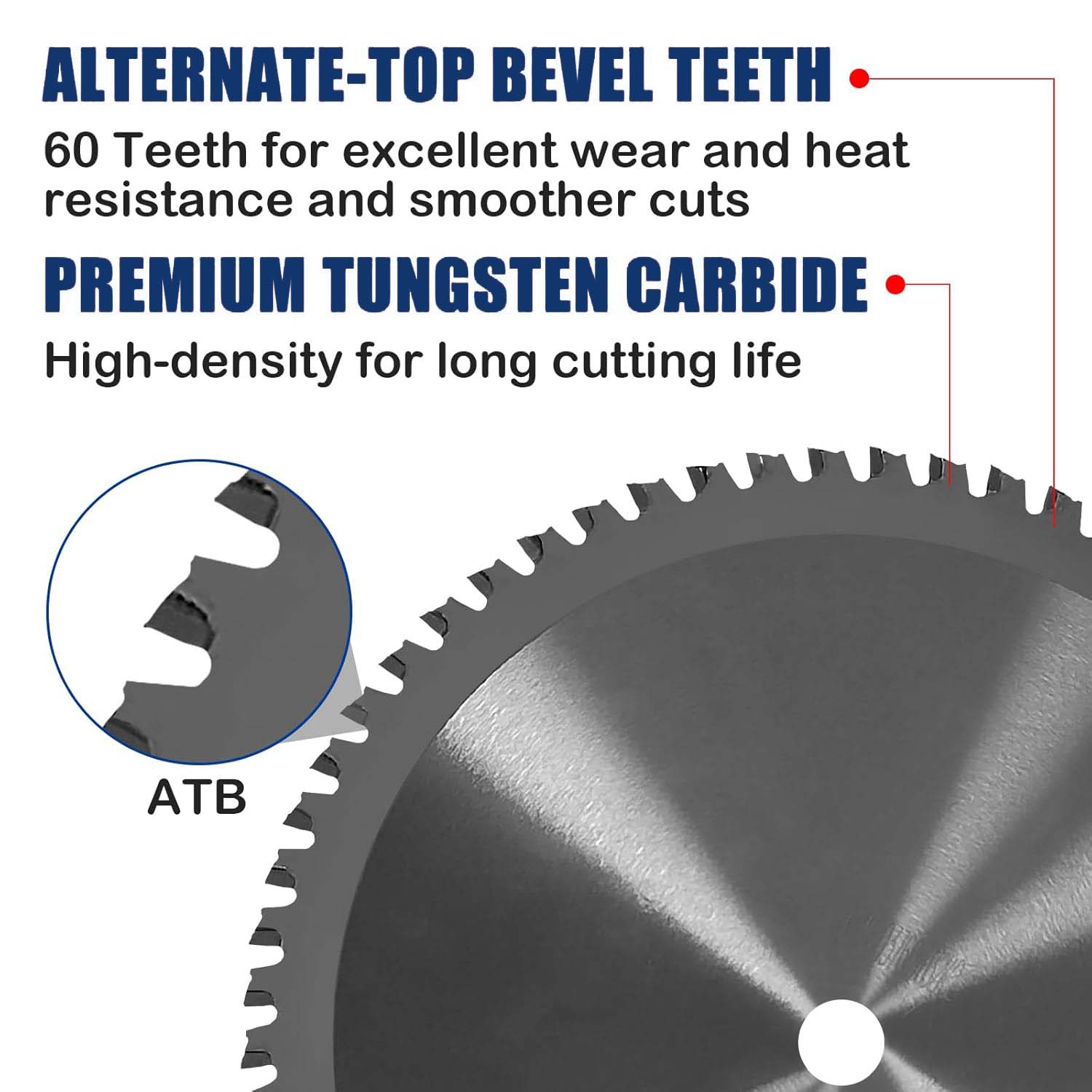 Ο σχεδιασμός της άκρης ATB επιτρέπει στα δόντια του κυκλικού πριονιού να κόβουν το υλικό εναλλάξ σαν μικρά μαχαίρια, μειώνοντας την αντίσταση κατά τη διάρκεια της κοπής. Αυτός ο σχεδιασμός μειώνει επίσης το φορτίο στον εξοπλισμό κοπής, καθιστώντας τη διαδικασία πιο ομαλή.