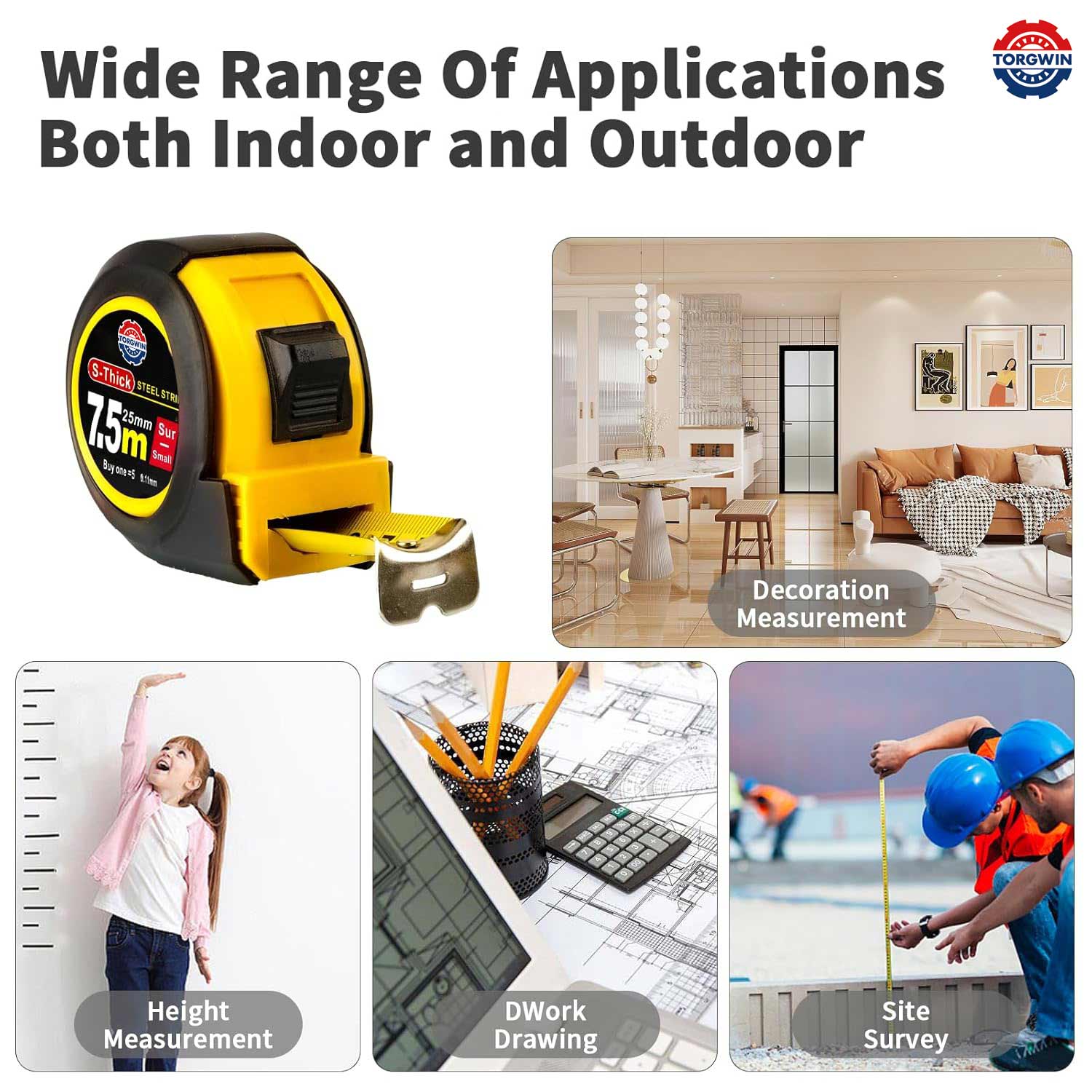 Το μέτρο της ταινίας μας έχει σχεδιαστεί για ένα ευρύ φάσμα εφαρμογών, τόσο εσωτερικού όσο και εξωτερικού χώρου, συμπεριλαμβανομένης της μέτρησης διακόσμησης, της μέτρησης ύψους, της σύνταξης και των ερευνών της τοποθεσίας. Διαθέτοντας σαφείς, διπλές σημάνσεις σε μονάδες τόσο σε ίντσες όσο και σε μετρικές μονάδες, εξασφαλίζει εύκολη αναγνωσιμότητα και ακριβείς μετρήσεις.